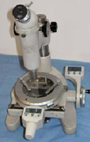 產品詳細介紹一、 用途: 15JE數顯型測量顯微鏡是光學計量儀器之一種,其測量工作臺可沿X、Y向移動,并繞垂軸旋轉,X、Y向的移動的距離可從數顯讀數裝置上讀取,旋轉角度通過度盤和游標讀取,儀器結構簡單,操作方便,適用范圍極廣,主要用途如下: 1、 直角座標中測定長度,例如測定孔距、基面距離、刻線寬度、鍵槽寬度、狹縫寬度、通孔外圓直徑等。 2、 轉動度盤測定角度,例如對刻度盤、樣板、量規、鉆孔模板及幾何形狀復雜的零件進行角度測量。 3、 用著觀察顯微鏡,以比較法檢查工作表面光潔度,鑒定冶金工業的礦石標本、檢定印刷照相制版,檢查紡織纖維等等。 二、 規格: 物 鏡 目 鏡(毫米) 顯微鏡 放大 倍數 工作 距離 (毫米) 視場 直徑 (毫米) 放大倍數/ 數值孔徑 焦距(毫米) 放大倍數 焦 距 (毫米) 2.5X/0.08 43.40 10X 25.00 25X 58.84 5.6 10X/0.25 17.13 100X 7.81 1.4 測量工作臺讀數裝置主要規格 1. 測量范圍 6、 分劃板 (1) 工作臺測量范圍X向 50毫米 Y向 13毫米 (2) 圓工作臺角度測量范圍 0°-360° 1、目鏡 2. 分度值 (1) 工作臺數顯讀數裝置分度值 0.001毫米 (2) 圓工作臺分度值 1° 2、棱鏡 (3) 圓工作臺游標分度值 6’ 3. 儀器測量準確度 ±(5+L/15)微米 4. 測量地點溫度變化(20±3)℃ 三、儀器主要尺寸: 1. 測量工作臺玻璃臺面與物鏡間的最大距離 80毫米 3、物鏡 2. 測量工作臺直徑 120毫米 3. 儀器外形尺寸(長x 寬 x 高) 284x263.5x332毫米 四、儀器重量:11千克 4、工作臺 顯微鏡的目鏡管同棱鏡成為一體繞垂軸旋轉, 顯微鏡可由調焦手輪進行上下調焦。 5、照明器