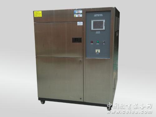 二、高低溫沖擊試驗箱結構特點: 產品外形美觀、結構合理、工藝先進、選材考究。 設備分為高溫室、低溫室、測試室三部分,采獨特之斷熱結構及蓄熱蓄冷效果,試驗時待測物完全靜止,應用冷熱風路切換方式將冷、熱溫度導入測試區實現冷熱沖擊測試目的。 采用觸控式液晶(LCD)顯示人機介面專用控制器,最先進的計測裝置, 操作簡單, 學習容易, 穩定可靠,中,英文顯示完整的系統操作狀況、執行及設定程序曲線。 具96個試驗規范獨立設定,沖擊時間999小時59最大分鐘, 循環周期1~999次可設定, 可實現制冷機自動運轉,最大程度上實現自動化,減輕操作人員工作量,可在任意時間自動啟動﹑停止工作運行。 箱體左側具?50mm之測試孔1個,可供外加電源負載配線測試部件。 可獨立設定高溫、低溫及冷熱沖擊三種不同條件之功能,并于執行冷熱沖擊條件時,可選擇二槽式或三槽式及冷沖、熱沖進行沖擊之功能,具備高低溫試驗機的功能。具備全自動,高精密系統回路、任一機件動作,完全有P.L.C鎖定處理,全部采用P.I.D自動演算控制,溫度控制精度高。 獨特的空氣流通循環設計,使室內溫度均勻,避免任何死角;完備的安全保護裝置,避免了任何可能發生安全隱患,保證設備的長期可靠性 可設定循環次數及除霜次數自動(手動) 除霜. 出風口于回風口感知器檢測控制,風門機構切換時間為10秒內完成,冷熱沖擊溫度恢復時間為5分鐘內完成。 周全的安全保護裝置,發生異常狀況時,熒幕上即刻自動顯示故障點及原因和提供排除故障的方法,并于發現輸入電力不穩定時,具有緊急停機裝置。 冷凍系統采用二元高效低溫回路系統設計,采用歐美原裝進口壓縮機,并采用對臭氧系數為零的綠色環保(HFC)制冷劑R507,R23. 超強安全保護功能:電源過載保護、漏電保護、控制回路過載、短路保護、壓縮機保護、接地保護、超溫保護、報警聲訊提示等。 箱體內外部材質采用不銹鋼板(SUS#304)