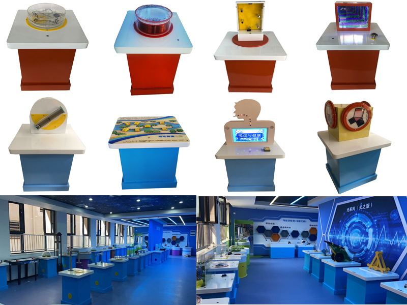 科技館由安全教育、人工智能與機器人、禁毒體驗、法制教育、數學、電磁學、力學、光學、聲學、生命科學、新能源、地球科學、軍事科技、航天航空、航海、環境保護和海洋世界等方面的系列儀器組成。這些儀器集科學性、知識性、趣味性、操作性于一體,將光的反射、聲的傳播、力的分解、電的產生、水的循環、能的轉化、磁場變化等自然常識和科學原理以最直觀的形式演示出來。學生親自操作,動腦動手,發現其中的奧妙,掌握其中的科學原理。