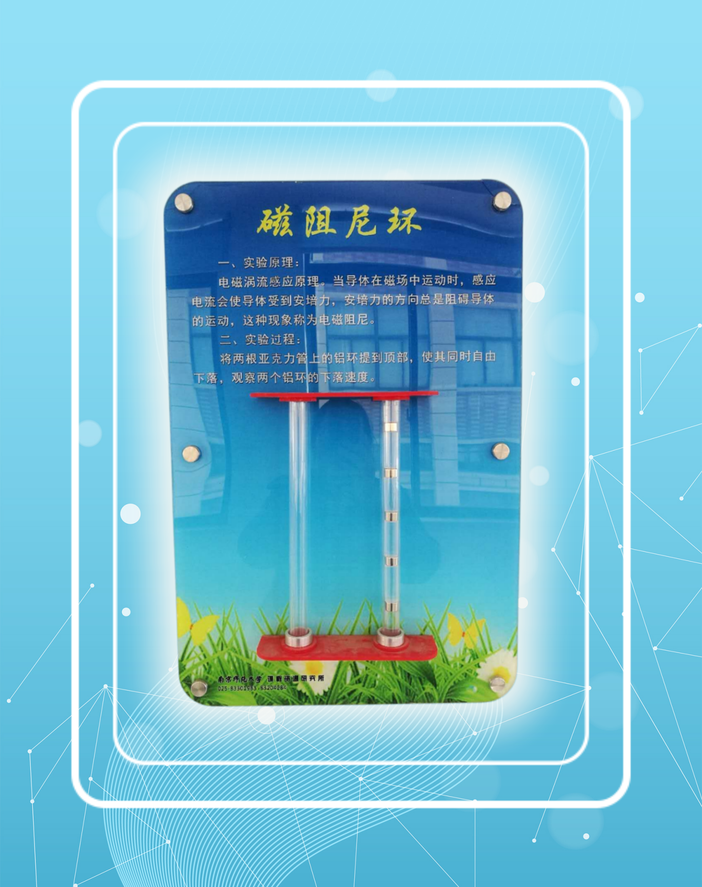 規格:400X600,主要展示器件安裝于亞克力前板上;前板為5mm厚亞克力板,畫面采用UV打印技術,背板采用12mm抗貝特板;前后板可用6顆36mm的工藝螺釘固定于墻體上。采用模塊化手搖發電機構和穩壓穩流技術供電。