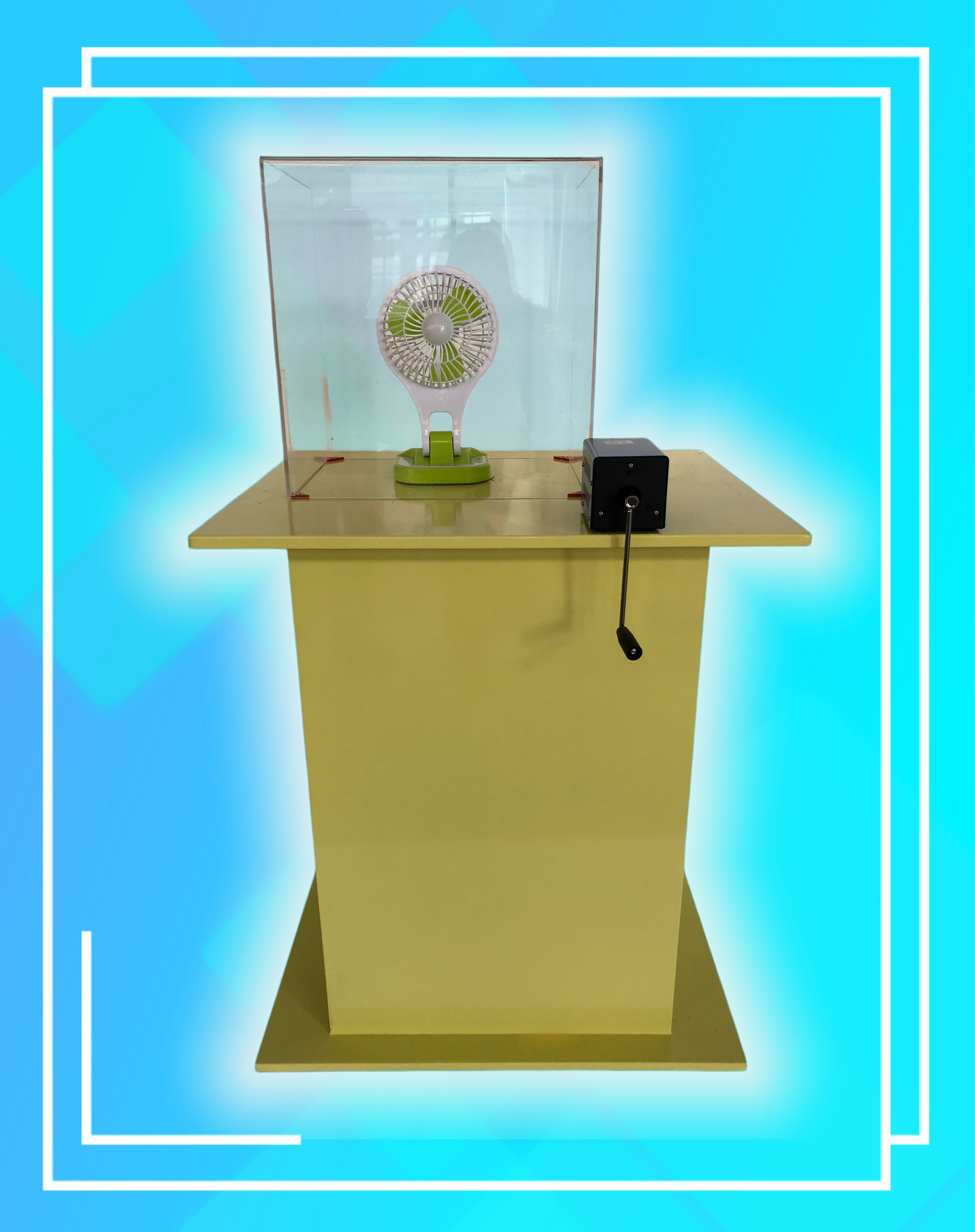 3、參與者按下啟動(dòng)按鈕,水流從高處落下,沖擊水輪,水輪轉(zhuǎn)動(dòng)發(fā)電,LED燈珠亮起。