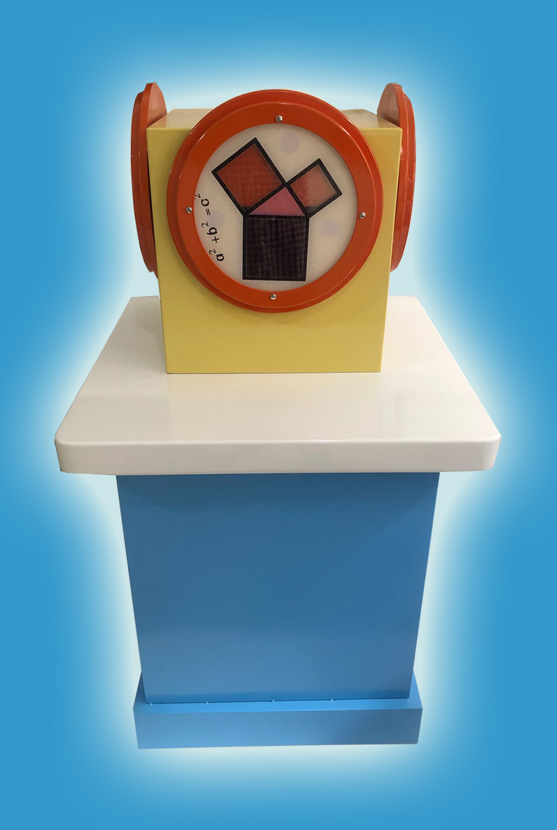 展品設(shè)計為仿真的老樹樁模型,樹樁橫截面上設(shè)有3個可左右擺動的放大鏡裝置。小朋友可趴在樹樁上通過觀察年輪判斷老橡樹的年齡,也可通過放大鏡觀察年輪的疏密。觀察結(jié)束后通過閱讀圖文板得到正確的答案。