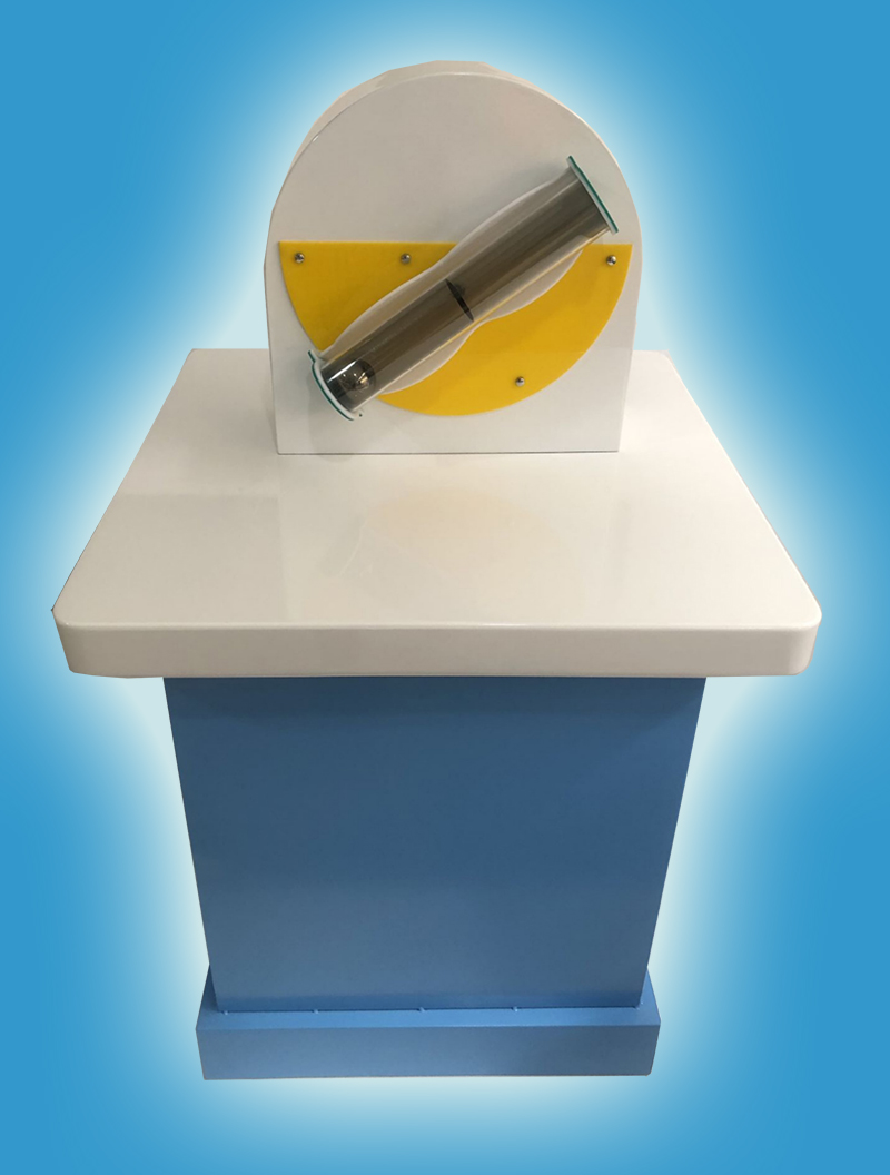 展臺上方有個有機玻璃筒,筒上部的底面蒙一層防水透氣織物和一層密布細孔的有機玻璃托板。與有機玻璃筒上部相連接的是一個接通打氣筒的密閉空間。觀眾用打氣筒打氣,就可以看到氣泡從有機玻璃筒底部升起,同時可以看到有機玻璃筒底部的空間是干燥無水的。由此感受隔水透氣面料的奇特功能。