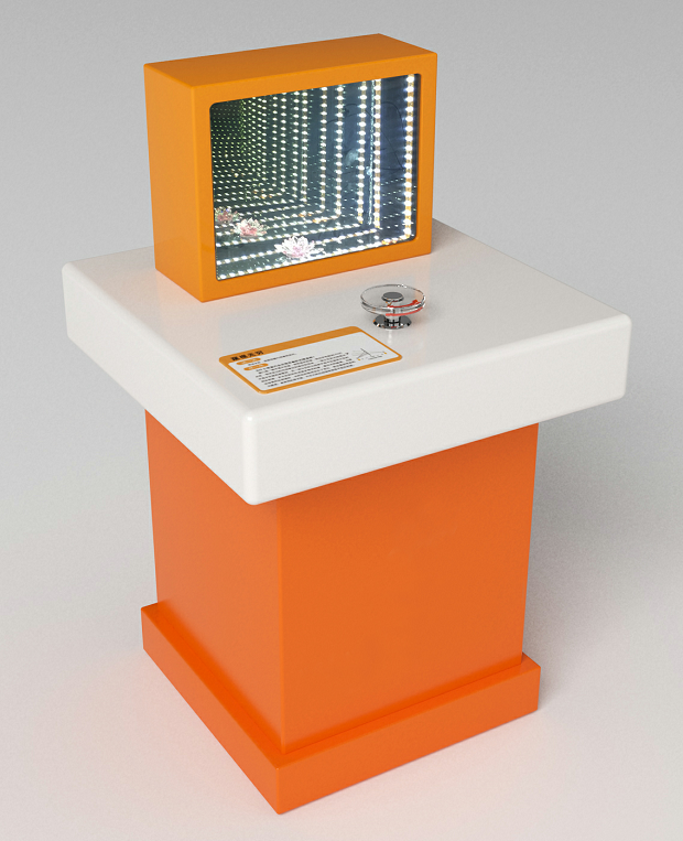 本展項由展柜上鑲嵌的顯示器和操作臺組成。觀眾可通過在操作臺上方揮手觸發觀看。