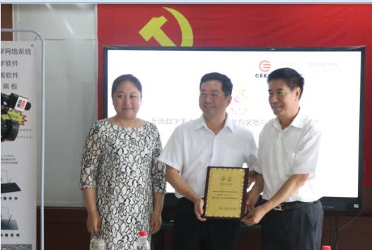 中國教育裝備行業(yè)協(xié)會王富會長為肖永亮專家頒發(fā)聘書