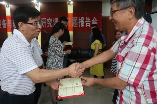 四川省教育裝備行業(yè)協(xié)會張林祥會長為龍念南專家頒發(fā)聘書