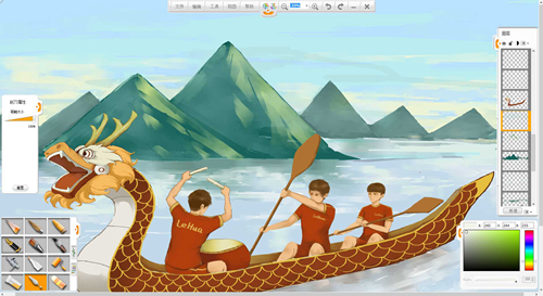 現(xiàn)在來創(chuàng)作一幅端午節(jié)劃龍舟的作品吧。