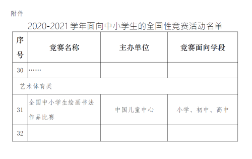 附件:2020-2021學年面向中小學生的全國性競賽活動名單