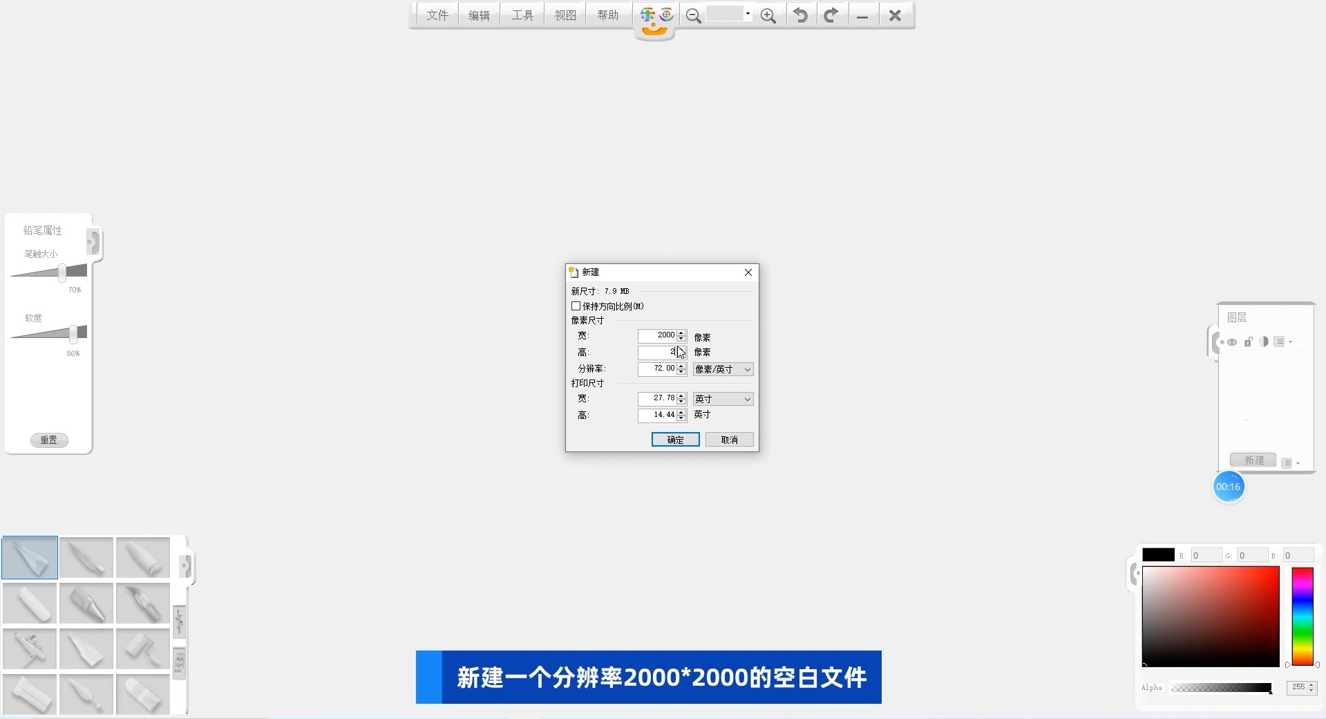 01打開樂畫軟件,新建一個長2000像素,寬2000像素的空白文件