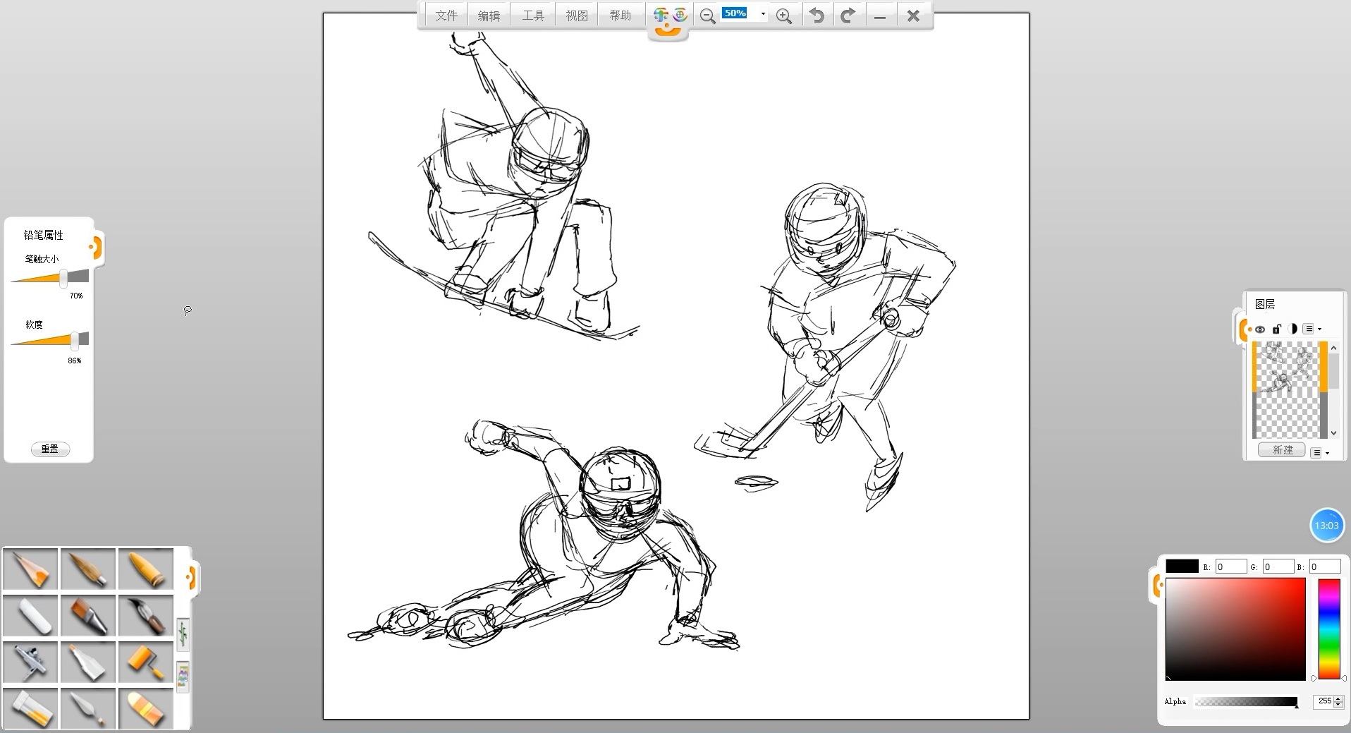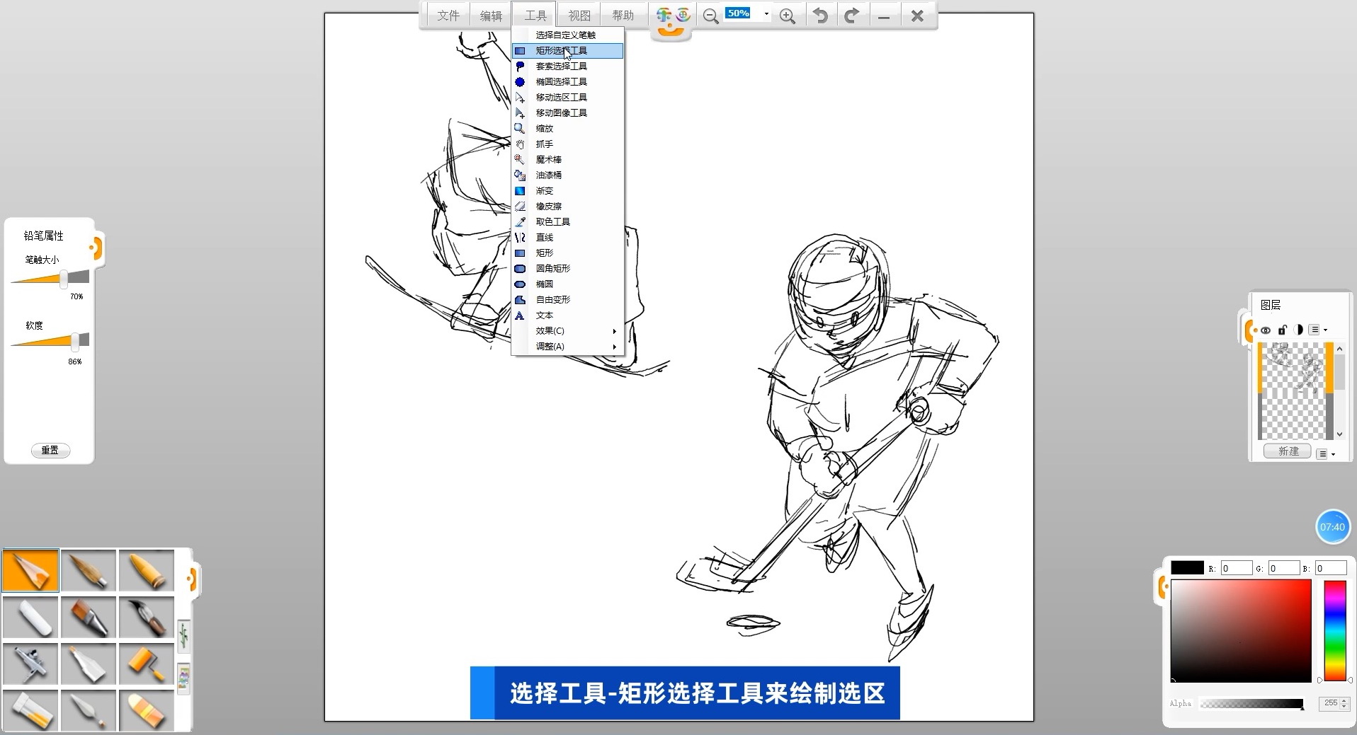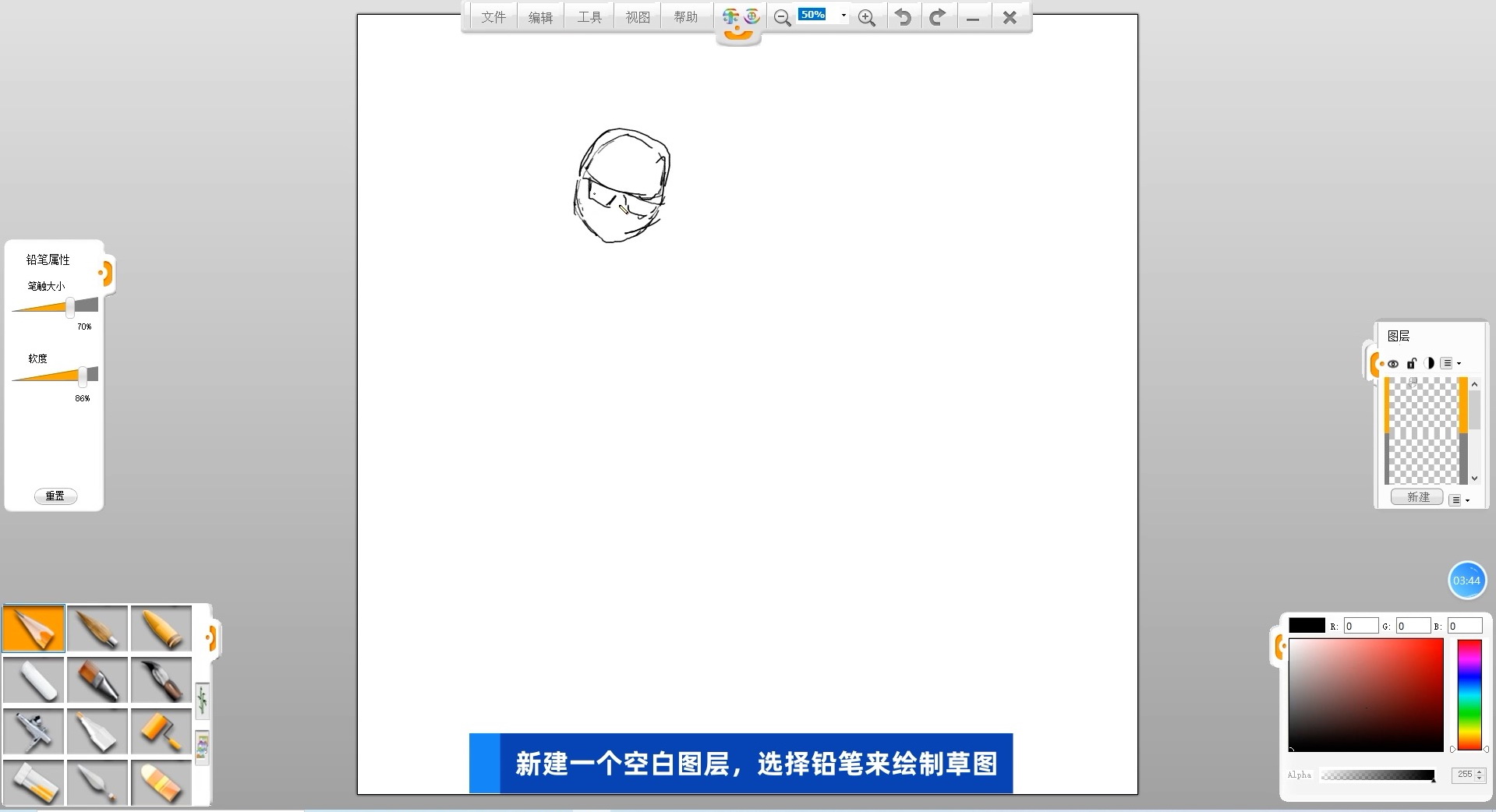 02新建一個空白圖層,選擇鉛筆筆觸來繪制海報的草圖