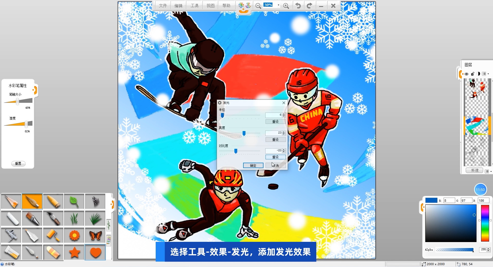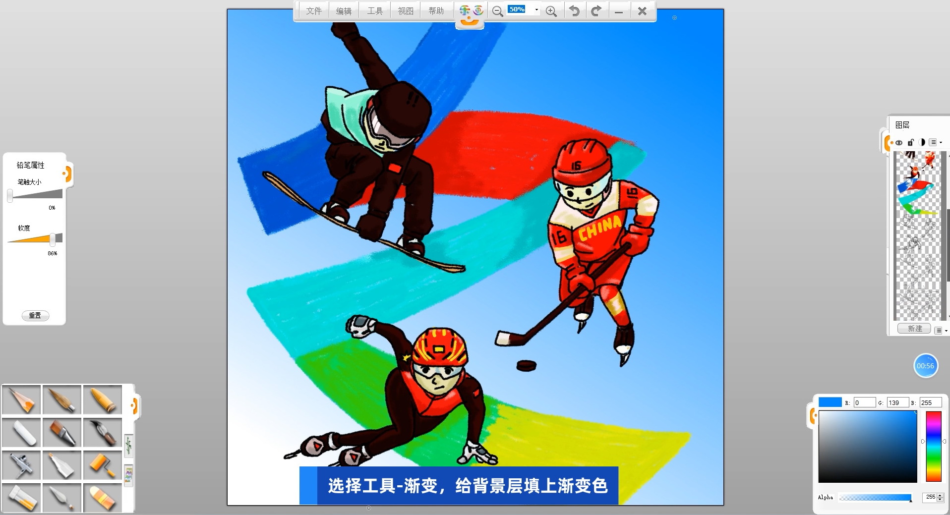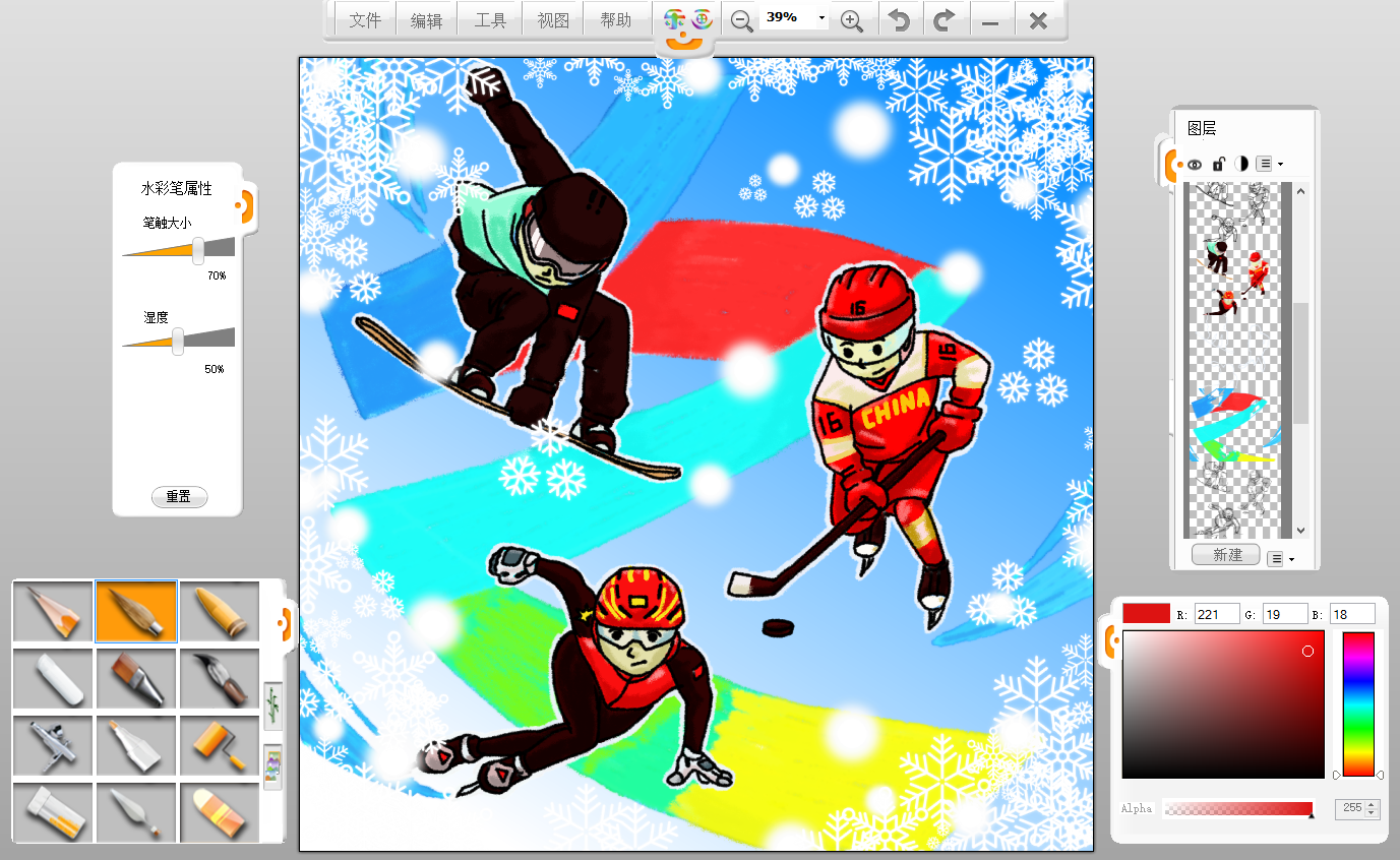 使用樂畫繪畫軟件繪制冰雪運(yùn)動主題海報