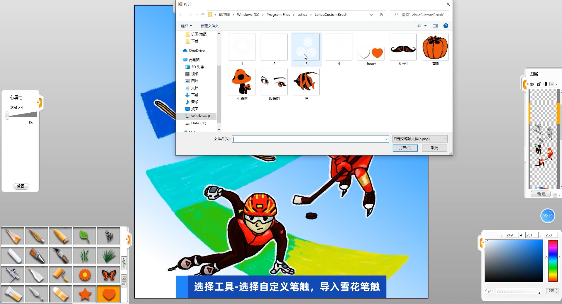 19 選擇工具-選擇自定義筆觸,導(dǎo)入提前準(zhǔn)備好的多種“雪花”的特殊筆觸