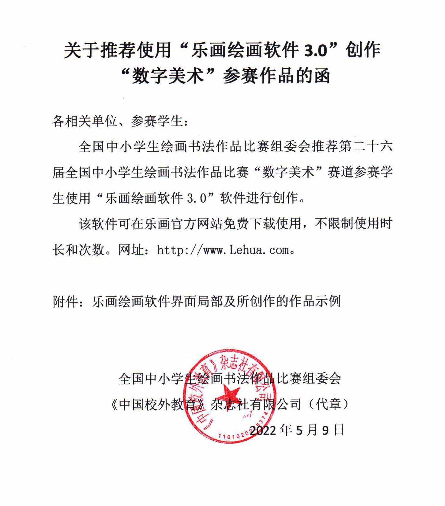 全國中小學生繪畫書法作品比賽組委會推薦第二十六屆全國中小學生繪畫書法作品比賽“數字美術”賽道參賽學生使用“樂畫繪畫軟件3.0”軟件進行創作。