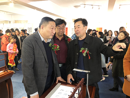 葫蘆島市教育局副局長關立峰、葫蘆島市文聯組聯部主任陳野、葫蘆島市書法家協會副主席張儒林、師慶華、常務副主席兼秘書長劉源濤、副秘書長魏雨蒙、內蒙古民盟美術院副院長金侯、葫蘆島市科技館館長孫薇等領導出席了開幕式儀式并參觀了書法大賽的作品。