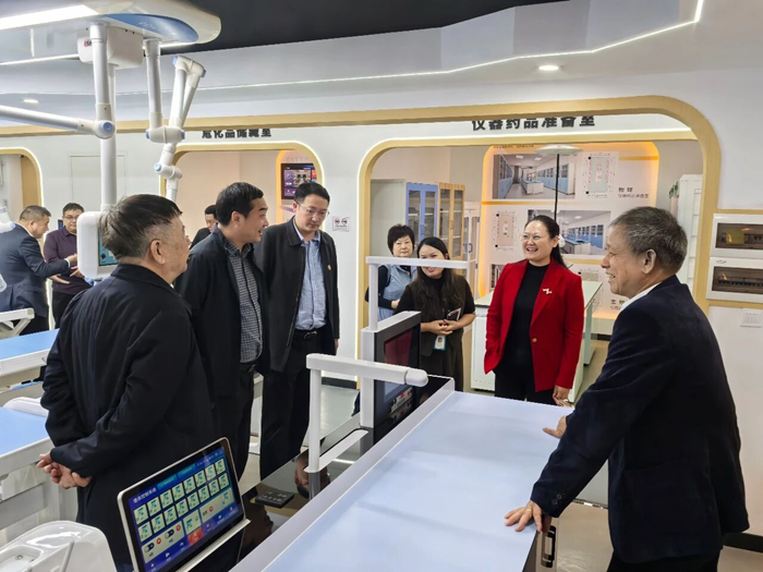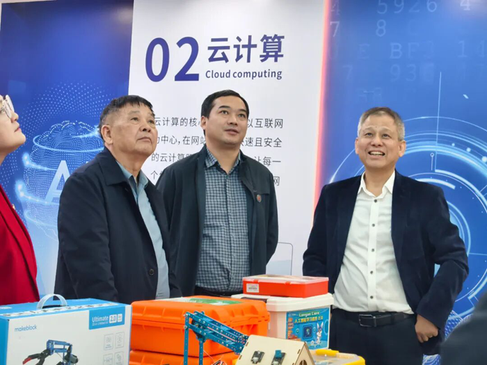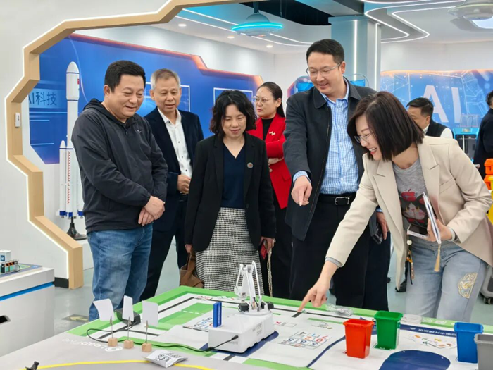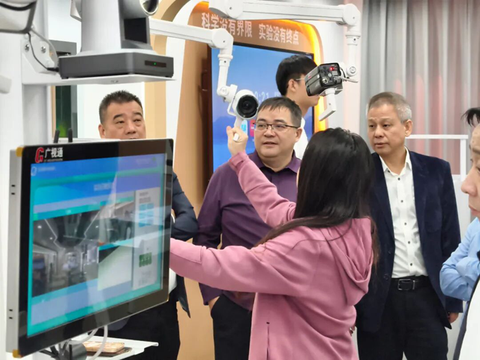 座談會結束后,在陳登貴董事長的陪同下,協會領導一行走進了廣視通教育裝備數字化展廳,近距離觀摩廣視通的核心產品與解決方案,對公司深耕教育裝備領域的成果表示肯定,并對產品的創新性、實用性以及在推動教育數字化發展中的積極作用給予高度評價。