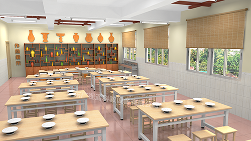 學校陶藝室擁有一整套先進齊全的陶藝教學設備,有手轉盤、泥條機、磨釉機、煉泥機、拉坯機、陶泥、釉料、陶藝工具等用品供學生們使用。