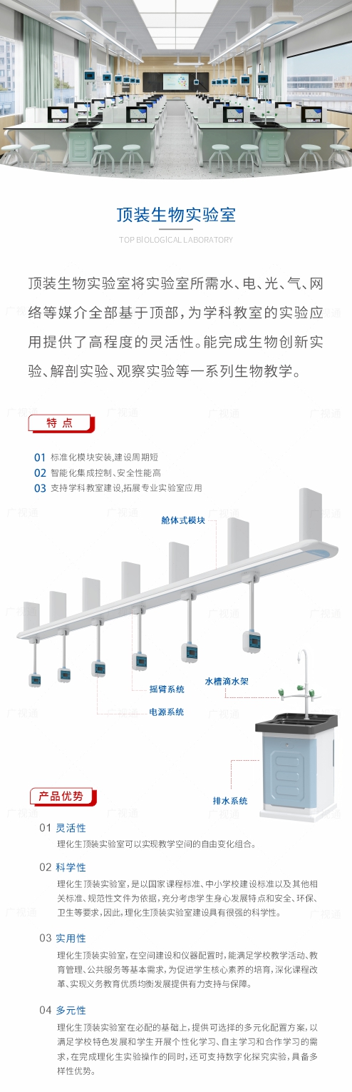 教育裝備數字化一站式解決方案,智能理化生實驗室、中考實驗操作考評系統、實驗仿真與教學系統、數字書法教學云系統、中學AI教考實驗室(升降式/便攜式智能終端)、頂裝/吊裝實驗室、探究實驗室、科學實驗室、人工智能科創實驗室、智慧書法教室、數字音樂教室、美術教室、數字地理教室、數字歷史教室、心理咨詢室、閱覽室、舞蹈室、陶藝室、烹飪教室、通用技術實驗室、勞動教育功能教室、科普探究等