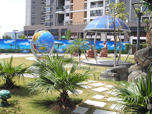 地理科普園的建設(shè)在地理學(xué)科教學(xué)中具有重要意義。其突出功能是化書為物直觀形象、造型逼真、科學(xué)性強、化繁為簡、便于理解,成為集地理教學(xué)、校園美化為一體的多功能地理科普園。同時地理科普園是理想的地理課堂輔助教學(xué)和進行地理課外活動的良好場所。是實現(xiàn)地理課從應(yīng)試教育向素質(zhì)教育轉(zhuǎn)變的途徑之一,也是進行鄉(xiāng)土地理教育的重要基礎(chǔ)。地理園建設(shè)是以教育部頒發(fā)的現(xiàn)行教育大綱為依據(jù),同時結(jié)合地理教學(xué)的客觀實際,學(xué)校場地的實際情況而設(shè)計的。其主要內(nèi)容是以地球上各種具有代表性的地貌、地質(zhì)特征微縮而成的。