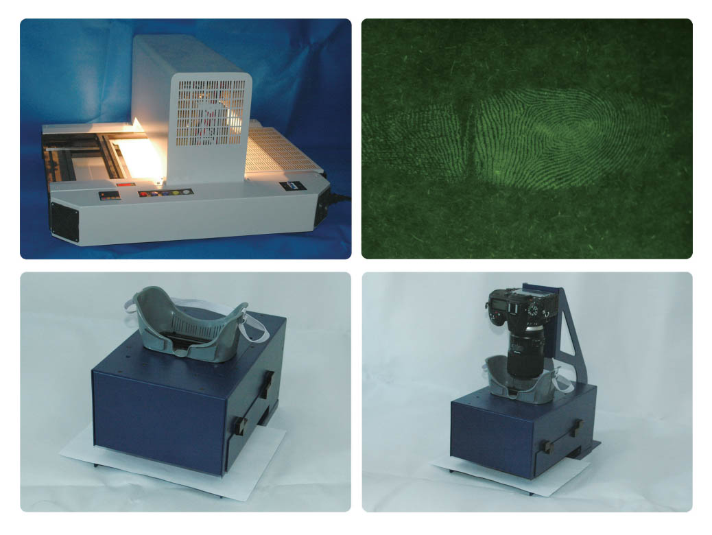 產品詳細介紹HXZZ-I型紙張手印快速顯現儀 價格:160,000.00/臺 一、產品結構 1. 紙張指紋加熱儀可以按設定時間、設定溫度對紙張進行強光輻照加熱。 2. 觀察箱內安裝藍色和綠色兩種光源,光源輸出口都安裝帶通式干涉濾光片。觀察箱頂端安裝有長方形觀察孔,可以分別安放藍光觀察濾光眼鏡、綠光觀察濾光眼鏡。透過觀察濾光眼鏡可以觀察指紋熒光。 3. 翻拍架上安裝照相機,可以透過觀察濾光眼鏡拍照指紋熒光。 二、設備操作及工作原理 1. 將承載汗液指紋的紙張放置在指紋加熱儀的載物臺上,開機進行加熱處理,加熱過程使指紋物質中的氨基酸變性,變成為熒光物質。 2. 加熱處理后的紙張放入熒光觀察箱。 3. 開啟藍色光源,將藍光觀察濾光眼鏡(干涉型)安放在觀察孔上,透過濾光眼鏡可以看到黃綠色指紋熒光。 4. 如果藍色光源下,紙張背景產生顯著熒光,背景熒光會削弱指紋熒光的效果。遇到此種情況,應關閉藍色光源,開啟綠色光源。將綠光觀察濾光眼鏡(干涉型)安放在觀察孔上,透過濾光眼鏡可以看到黃綠色指紋熒光。綠色光源下,指紋的熒光強度會輕度下降,背景熒光會大幅下降,指紋反差會明顯提高。 5. 將相機安裝在翻拍架上,透過濾光眼鏡拍照指紋的熒光圖像。 三、產品優點 1. 大量的比較實驗證明,對于紙張上的新鮮汗液指紋,此方法的顯現效率高于茚三酮,等同于DFO和茚二酮;對于紙張上的陳舊汗液指紋,此方法的顯現效率高于茚三酮、DFO和茚二酮。 2. 經過該設備顯現后,可用茚三酮、DFO、茚二酮或物理顯影液進行再顯現。 3. 無需復雜的化學處理,顯現過程快捷無損,30-60秒鐘可完成顯現過程,特別適合大量檢材的快速處理 四、技術參數: 1. 最大支持紙張尺寸:240 x 320 毫米 2. 顯現設備工作電壓:220V / 50Hz 3. 加熱源功率:500~1500W可調 4. 加熱時間:20~300秒可調 5. 藍光功率:50w 6. 綠光功率:50w 7. 加熱儀尺寸:長700,寬620,高410mm 8. 觀察箱尺寸:長315,寬200,高185mm 配置內容: 1 紙張指紋加熱儀 1臺 2 藍、綠雙光源熒光觀察箱 1個 3 藍光觀察濾光眼鏡(干涉濾光片) 1付 4 綠光觀察濾光眼鏡(干涉濾光片) 1付 5 佳能EOS700D相機 1個 6 騰龍90mm微距鏡頭 1個 7 翻拍架 1個 |