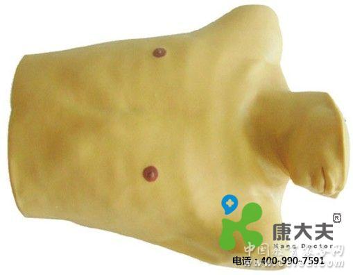 ■ 仿真模型取斜坡臥位,質地柔軟,觸感真實,外觀形象逼真。 ■ 解剖位置準確:胸骨、劍突、肋骨、各肋間隙,可明顯觸。 ■ 可行心前區穿刺訓練、劍突與第7肋軟骨交界處下方穿刺訓練,穿刺針進入心包腔(通過負壓)有液體引出。