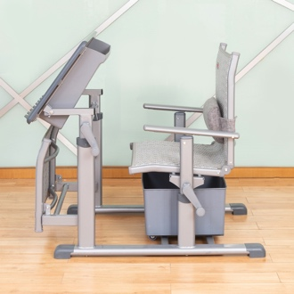 4、課椅規格及材料:寬460mm*深380mm*(座椅面高360mm-460mm可手搖升降調節)±5mm,椅背可調最大傾斜度150°。座靠面料采用環保PE藤質材料。課椅座面前部背面設置寬70mm的丙綸絲編織加強帶,增強課椅座面的承受力。椅下設置370*330*190mm±3mm的PP材料的貯物箱,貯物箱底下前部設置雙滑輪,后部設置滑塊,與課椅下雙滑軌(ABS材質,規格315*30*20mm)的卡位裝置結構配合,貯物箱可前后自由限位滑動,可脫卸。