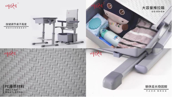 它改變了傳統課桌椅固定的水平桌面,設計了桌面傾斜功能,輕輕一按,水平桌面就變成了傾斜桌面,操作簡單安全,如此一來桌子即可變為學習桌、考試桌、畫桌、躺板多種模式。