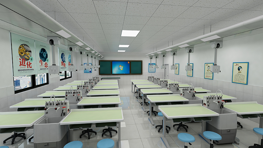 引入國際先進理念,革新傳統實驗室建設施工過程,徹底消除管線鋪設繁多、教室地面被破壞,不同學科實驗室對樓層要求嚴格等弊端,施工方式從地面(隱蔽)走向頂部(開放),充分解放教室地面,為教室承載更多功能提供可能。