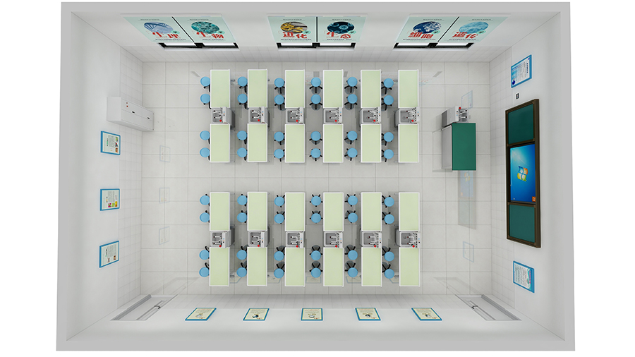 理化生的學科性質決定了該學科教室必備的實驗功能,東方 Sky-Docking 實驗室的模塊化組合能有效實現學科教室的功能分區,包括教學區、實驗區、研討區、展示區等。采用吊裝式方案的專業實驗室,由于解放教室地面,可根據教學需求,任意組合為實驗模式、上課模式、研討模式等,進一步拓展專業實驗室的應用。