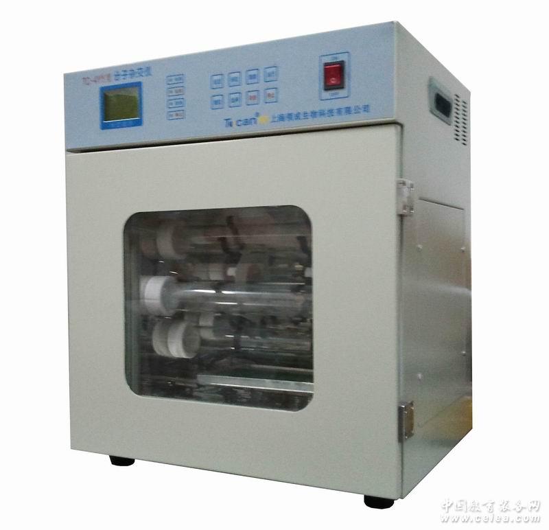 本儀器采用先進的單片計算機進行控制,人機界面采用點陣式液晶顯示器(LCD),直觀顯示系統的運行狀況。溫度控制采用數字PID技術,輸出采用PWM方式,控制精度高,穩定性好,并設有超溫保護裝置。儀器采用獨特滾動式反應裝置,每次可夾6根特制玻璃封管在水平軸旋轉,旋轉速度為每分鐘0~16轉/可調。TC-4YY型分子雜交儀除具有TC-3YY型所有功能外,雜交箱內可放入直徑42mm長300mm雜交瓶。