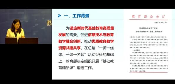 會上,教育部基礎(chǔ)教育司司長呂玉剛指出,“基礎(chǔ)教育精品課”遴選工作是推進基礎(chǔ)教育高質(zhì)量發(fā)展的重要舉措,是落實“雙減”任務(wù)的重要行動,也是新時期進一步推進信息技術(shù)和教育教學(xué)融合的重要手段。