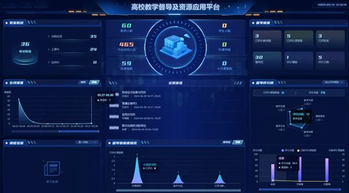 樂山師范學院攜手奧威亞打造27間AI錄播教室與信息化平臺,將人工智能技術融入到日常督導、教學工作中。學校管理者無需親臨現(xiàn)場,即可任意調(diào)取AI錄播教室進行巡回查課、隨機聽課和觀看公開課;此外,平臺支持多模態(tài)的數(shù)據(jù)分析,可視化呈現(xiàn)教情、學情數(shù)據(jù),便于管理者洞察數(shù)據(jù)關系,為優(yōu)化教育管理提供數(shù)據(jù)支撐。