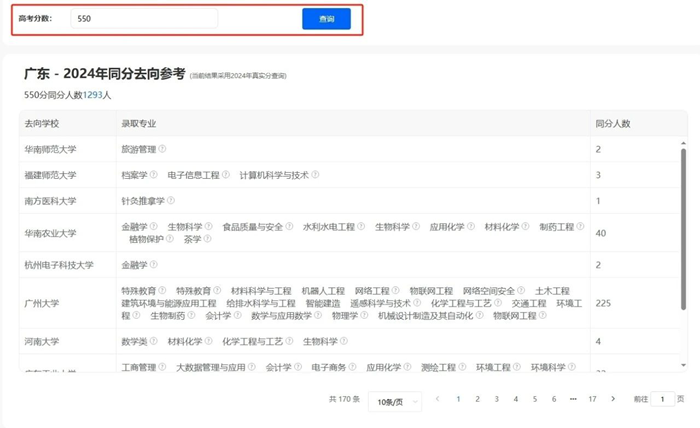 同分去向:參考往年同位次考生錄取案例!