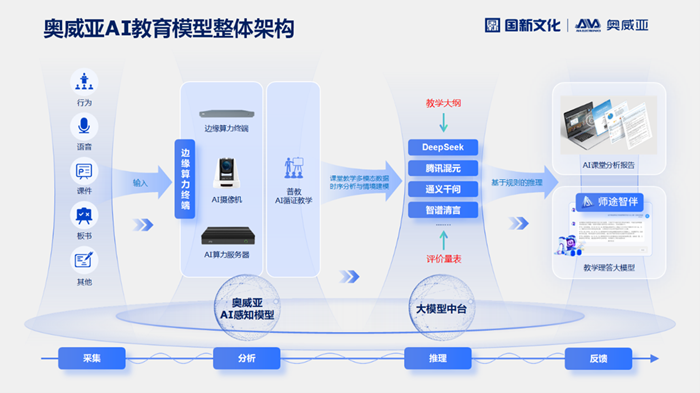 在數據采集端,奧威亞自主研發的AI課堂循證終端發揮著核心作用。它集深度AI算力于一體,在邊緣端即可完成課堂行為、語音交互、板書文本、課件內容、學生作業及人工評價等多模態數據的實時捕捉與初步處理。這一“采集分析一體化”的設計,不僅極大提升了數據處理效率,更通過本地化分析有效保障了師生生物特征信息的安全,為學校構建起隱私可控的智慧教學環境。