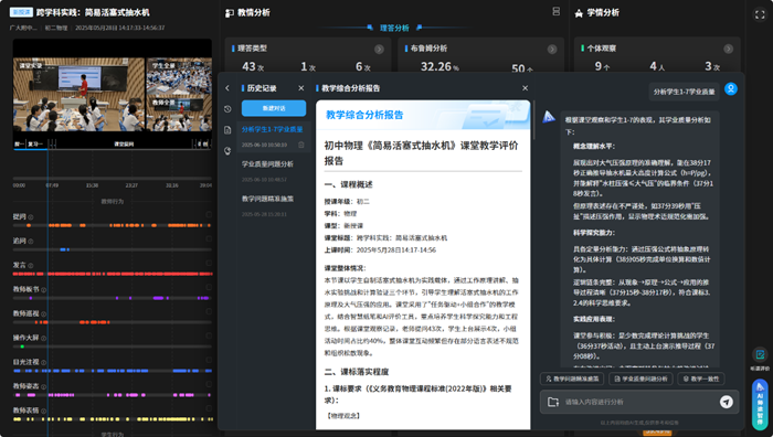 數據采集只是起點,深度分析才是價值所在。奧威亞課堂多模態循證分析模型覆蓋20多類教學事件定義、30余種觀察點與80多個分析維度,能夠對課堂教學進行時序建模與情境建模。當這些結構化數據接入DeepSeek等大模型后,系統的分析能力實現了躍升,能挖掘數據背后的教學規律與因果關系,為教師提供教學優化方向。