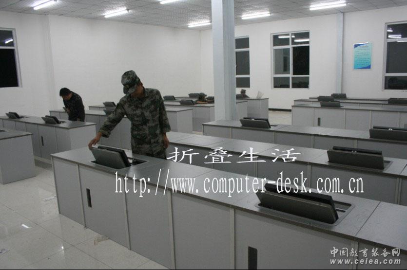 產(chǎn)品詳細介紹 產(chǎn)品特點:一、折疊生活的兩用多媒體電子課桌號稱“聰明的電腦桌”,即在拉出鍵盤的時候,液晶顯示器自動翻轉(zhuǎn)過來。合上顯示器的時候,鍵盤自動回縮到桌面下部。這樣做的好處是:1)拋棄了傳統(tǒng)的“升降機”模式,大大降低了擁有成本和維護成本,增加了產(chǎn)品的安全性;2)老師和學生之間沒有顯示器阻隔,教學效果更好;3)多媒體模式和非多媒體模式切換快速,沒有噪音;4)釋放了大量的桌面底部空間,舒適感增加。二、主機托架可掛在桌面下面,可以輕松摘下。翻轉(zhuǎn)式優(yōu)點1:聰明的電腦桌◆撥動按鈕,液晶屏幕自動翻轉(zhuǎn)。◆合上屏幕時,鍵盤自動回復。翻轉(zhuǎn)式優(yōu)點2:懂人心意的電腦桌◆撥動按鈕時,有打開翻轉(zhuǎn)桌面的扭力力矩助力,輕松翻轉(zhuǎn)。剛打開速度很快,以縮短打開時間。翻轉(zhuǎn)式優(yōu)點3:溫柔的電腦桌◆打開桌面時,翻轉(zhuǎn)桌面在接近最合適視線的位置時,阻尼突然介入,讓翻轉(zhuǎn)桌面非常輕柔地停止翻轉(zhuǎn)。◆合上翻轉(zhuǎn)桌面時,阻尼一直在作用,誰也無法粗暴地合上桌面,同時最后會發(fā)出清脆悅耳的一聲“卡塔”,提示使用者桌面已經(jīng)被鎖住。翻轉(zhuǎn)式優(yōu)點4:完全的機械結(jié)構(gòu)實現(xiàn)◆以上過程不但全靠巧妙的機械結(jié)構(gòu)實現(xiàn),大大提高了安全性,停電的時候也可以關(guān)閉。◆停電時打開的功能雖然具備,但多余。翻轉(zhuǎn)式優(yōu)點5:低廉的擁有成本◆視材料、做工、性能、工期、運輸距離的不同,每人位的擁有成本在900-1350元之間,是升降式電腦桌擁有成本的四分之一。翻轉(zhuǎn)式優(yōu)點6:不占用桌面底部空間◆做普通課桌時,桌面下部無任何占用。翻轉(zhuǎn)式優(yōu)點7:關(guān)鍵人體工學尺寸可由用戶自行調(diào)節(jié)◆液晶顯示器的工作狀態(tài)的前后位置、上下高度和仰角,以及拉鍵盤的阻力、翻轉(zhuǎn)過程的阻尼大小,也統(tǒng)統(tǒng)可以由用戶輕松調(diào)節(jié),無需我方安裝工人介入。翻轉(zhuǎn)式優(yōu)點8:不阻礙師生視線交流◆液晶顯示器工作狀態(tài)下,液晶超出桌面小于17厘米(這個尺寸用戶可以自調(diào)節(jié)),不但不阻礙師生視線交流,而且,連學生桌面上擺放的物品,和學生的小動作,老師都可以一目了然。