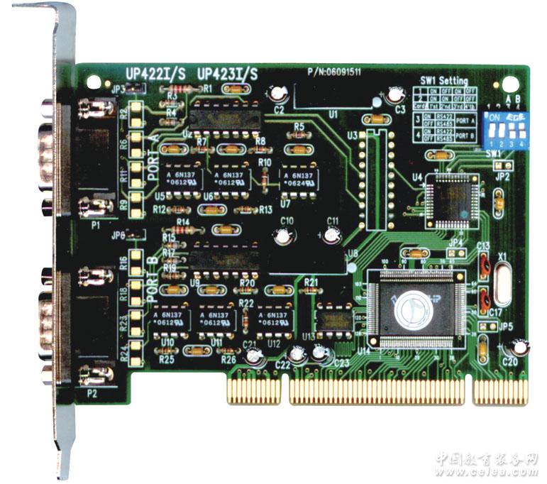 瑞旺UP422I卡:PCI-X卡,支援2個地電位隔離RS422/485串口。