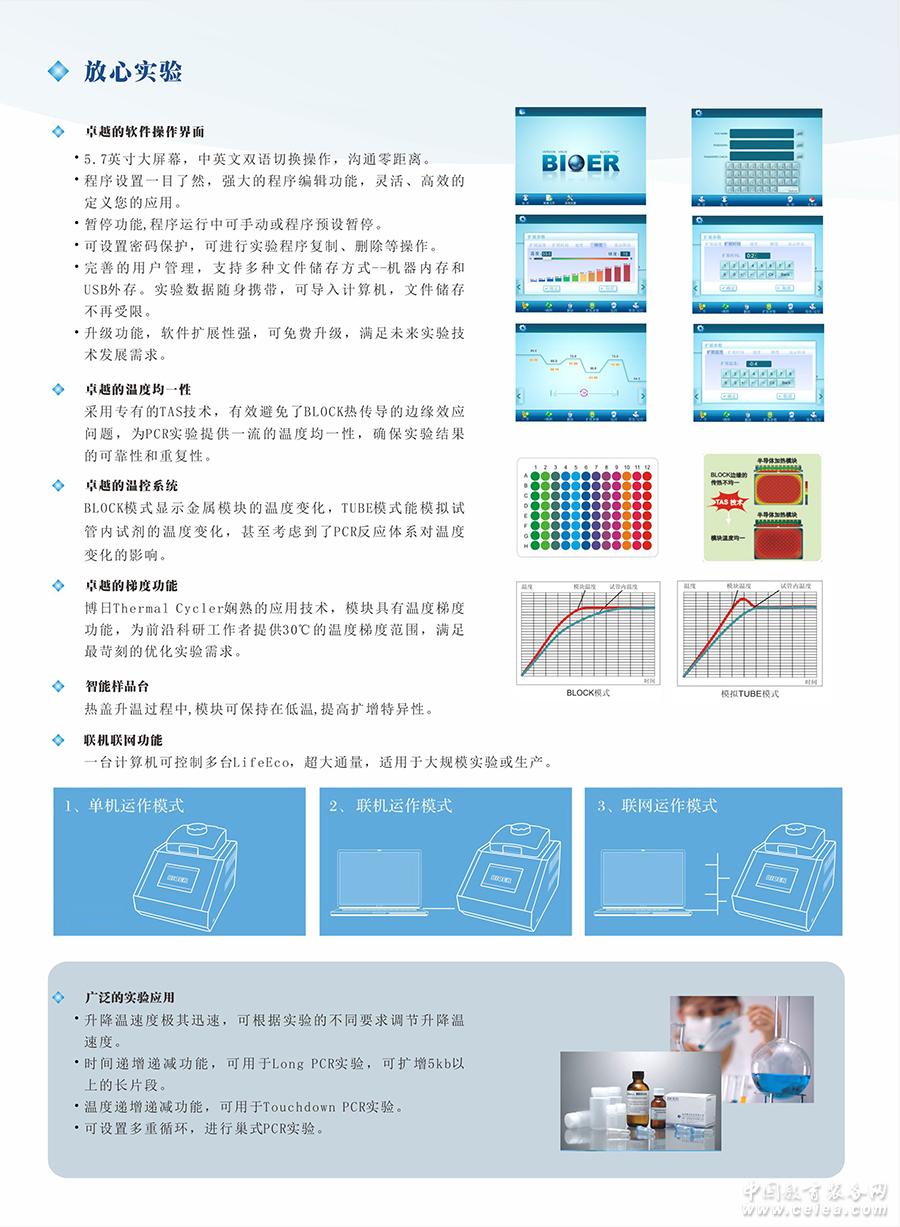 產品詳細介紹杭州博日基因擴增儀銷售,型號GeneTouch,基因擴增儀銷售,PCR儀銷售商,PCR儀專業供應,基因擴增儀廠家銷售,基因擴增儀廠家直銷 產品名稱 LifeEco LifeTouch GeneTouch 產品編號 BYQ6078 BYQ6072 BYQ6071 型號 TC-96/G/H(b)C TC-96/G/H(b)B TC-EA(主機) 模塊型號 —————— —————— B-96GA B3048UA B-384GA B-48DA B-4IA 樣本臺容量 96孔*0.2ml 96孔全裙板、 半裙板、 無裙板通用 12*8聯管 96孔*0.2ml 96孔全裙板、 半裙板、 無裙板通用 12*8聯管 96孔*0.2ml 96孔全裙板、 半裙板、 無裙板通用 12*8聯管 30*0.5ml 48*0.2ml 4*12聯管 384微孔板 (全裙) 每個模塊 48*0.2ml 6*8聯管 4塊載玻片 技術方案 半導體技術 液晶顯示 彩色觸屏(5.7英寸) 彩色觸屏(6.5英寸、26萬色) 溫度范圍 4℃~105℃ 最大升溫速度 ≥4℃/秒 ≥4℃/秒 ≥4℃/秒 ≥2.8℃/秒 ≥2.8℃/秒 ≥4℃/秒 ≥1.8℃/秒 最大降溫速度 ≥4℃/秒 ≥4℃/秒 ≥4℃/秒 ≥2.8℃/秒 ≥2.8℃/秒 ≥4℃/秒 ≥1.8℃/秒 溫度均一性 ≤±0.3℃ ≤±0.2℃ 溫控精度 ≤±0.1℃(55℃)≤±0.2℃(90℃以上) 溫度顯示分辨率 0.1℃ 溫控方式 BLOCKTUBE模式 變溫速度可調 0.1℃~4℃ 程序存儲數 250個文件,本機內存250個文件+USBFLASH 最大段數 10 最大步驟數 100 最大循環 99帶嵌套2級,可做巢式PCR實驗 時間遞增/遞減 0~9分59秒可做Long PCR實驗 溫度遞增/遞減 0.1℃~.9.9℃可做Touchdown PCR實驗 自動暫停/斷電保護 有 Soak功能 有 實時運行狀態顯示 圖文顯示模式 梯度溫差范圍 30℃~105℃ 30℃~105℃ 30℃~105℃ —————— 30℃~105℃ —————— —————— 梯度溫差范圍 1℃~30℃ 1℃~30℃ 1℃~30℃ —————— 1℃~30℃ —————— —————— 熱蓋溫度 30℃~110℃ 熱蓋溫度 溫度壓力可調節,適用不同品牌耗材 智能熱蓋功能 樣品臺溫度低于用戶設定值時或程序結束時,熱蓋自動關閉 U盤功能 通過U盤無限量下載程序 通訊接口 USB接口 網絡接口(LAN) 電壓范圍 100-240V,50~60Hz 輸出功率 600w 尺寸(長*寬*高) 335*260*270mm 345*250*270mm 368*250*285mm 凈重 8kg 10kg 10.5kg 認證 Ferrotec Pelitier / MET / CE / RoHS / PICC產品質量責任險 |