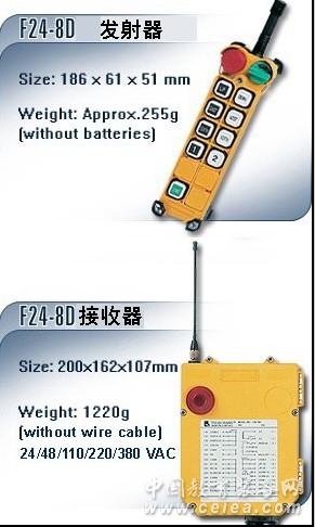 產(chǎn)品詳細(xì)介紹* 8只按鍵(雙速)+ 1只旋轉(zhuǎn)開(kāi)機(jī)/備用開(kāi)關(guān)鎖匙+1只蘑菇頭急停。 *控制點(diǎn)數(shù)達(dá)19個(gè) *尼龍加織的強(qiáng)化塑膠外殼,可防止摔落及強(qiáng)力碰撞所造成的損壞。增強(qiáng)型機(jī)種配備的兩段式按鍵,是采用了全密封的一體化雙速按鍵,使用壽命更長(zhǎng),手感更好。總停按鍵采用了自鎖定式紅色“蘑菇頭”按鈕,進(jìn)一步強(qiáng)調(diào)了整體的安全系數(shù)。*上/下、東/西、南/北可設(shè)定為是否相互抑制。全雙速按鍵,方便雙速機(jī)構(gòu)操作*開(kāi)機(jī)健可由電腦設(shè)定為開(kāi)機(jī)、加速、捺跳、普通等功能。*備用1-2號(hào)健可由電腦設(shè)定為普通、互鎖、捺跳、開(kāi)關(guān)等功能。 控制距離:可達(dá)100米 發(fā)射器電源:直流3V(2節(jié)堿性5號(hào)電池可使用1個(gè)月) 接收器電源:交流380V/220V/48V可選擇(50/60HZ),或直流12V/24V |