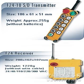 產品詳細介紹 * 10只按鍵(雙速)+ 1只旋轉開機/備用開關鎖匙+1只蘑菇頭急停。 *發射機電源:AA堿性電性×2*收發機電源:AC48/110/220/380V DC 12~24V *識別碼:43位組不重復識別碼(32位元)*漢明碼:≥4 *IP65防水防塵等級。*全系列硬件/軟件完全相容,可節省庫存支出*低耗電(使用兩顆AA堿性電池平均使用壽命可達2個月)*可經由PC軟件設定多種按鍵功能 (與Win98/ME/2000/XP相容), 能完全滿足各種操作要求*接收機含輸出電纜線,安裝簡單、快速。*多重安全保護設計:漢明碼、看門狗線路、32位元不重復識別碼 |