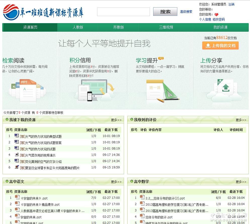 -------------------------------------------------------------------------------- 產(chǎn)品特點(diǎn) • 嚴(yán)格遵循《基礎(chǔ)教育教學(xué)資源元數(shù)據(jù)規(guī)范》國(guó)家標(biāo)準(zhǔn)。 • 內(nèi)容豐富:人教版、北師版、蘇教版、三維視頻、東師版、譯林版、外研社、科教版、粵教版、湘教版等版本。 • 表現(xiàn)形式多樣,用戶(hù)上傳的文檔自動(dòng)轉(zhuǎn)換成在線(xiàn)預(yù)覽模式,方便閱讀,下載依然是可編輯的文檔。 • 引入EMIF規(guī)范實(shí)現(xiàn)與城域網(wǎng)的資源交換,達(dá)到了資源共建共享。 • 可實(shí)現(xiàn)跨區(qū)域、跨庫(kù)的資源檢索。 • 提供個(gè)性化的資源預(yù)訂。 • 嚴(yán)格的資源審核和授權(quán)機(jī)制體現(xiàn)的系統(tǒng)的安全性。 • 分布式存儲(chǔ)和管理增強(qiáng)了系統(tǒng)的穩(wěn)定性。 • 多緯度的資源呈現(xiàn),友好的用戶(hù)界面體現(xiàn)了系統(tǒng)的易用性。