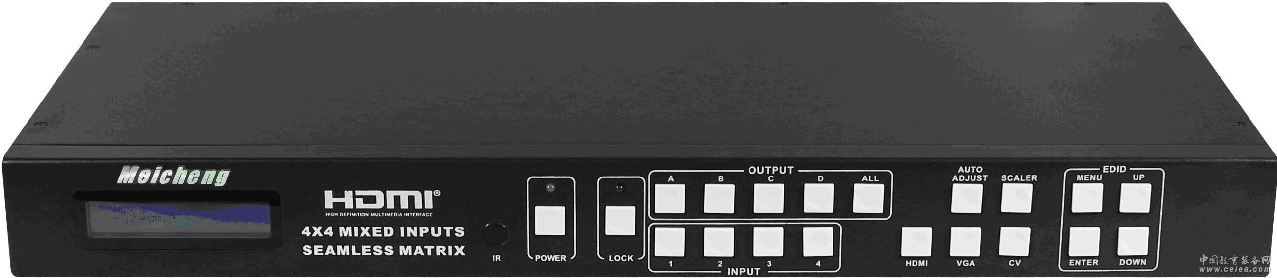 產(chǎn)品詳細(xì)介紹MX-1004VW是一款高性能電視墻拼接處理器—具畫面分割、無(wú)縫切換輸出及混合輸入4x4矩陣切換器,具4組混合訊號(hào)輸入[支持?jǐn)?shù)字和模擬影像訊號(hào)],同時(shí)4組輸出具無(wú)縫切換功能,無(wú)縫切換輸出模式分有:快速切換、淡入淡出、拉幕等16種特效。 該混合矩陣切換器采用先進(jìn)數(shù)字處理技術(shù),具影像Scaler(影像處理與轉(zhuǎn)換)后傳送到顯示器或是電視機(jī)的功能,實(shí)現(xiàn)并達(dá)到了多種格式訊號(hào)統(tǒng)一輸出、無(wú)縫切換的完美視覺效果。同時(shí)紅外線遙控矩陣功能、模擬影像訊號(hào)輸入兼具音訊嵌入功能。控制方式多樣靈活,可透過(guò)前面板按鈕控制、IR控制、RS-232控制、TCP/IP控制。