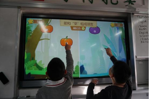 陳老師對此感觸頗深:“像對希沃白板5,剛開始我是抵觸的,因為習慣了用PPT。后來在學校老師的帶動下,使用了幾次后就明顯發現,操作更方便,還有專門針對教學的設置,像四線三格、英漢詞典這樣的英語工具很實用,特別是課堂互動模板很精彩。以前讓學生上來互動幾乎只有情景對話,現在參與更多連線配對之類的互動游戲,既加深了學生對知識點的記憶,又提高了他們的學習積極性和興趣,改變真的是很大。”