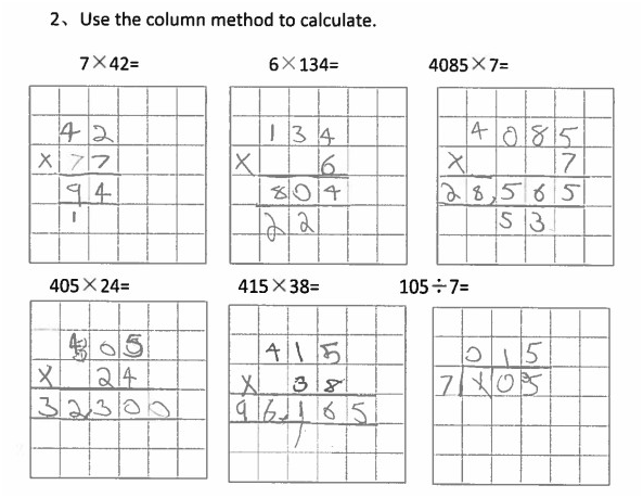 與2016年零起點(diǎn)的《分?jǐn)?shù)的初步認(rèn)識》不同,這次我執(zhí)教的《一位數(shù)乘多位數(shù)》涉及大量計算。我擔(dān)憂,對于計算能力相對薄弱的英國孩子,他們能吃透嗎?