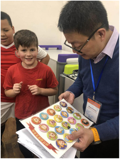 說到這里,大家可能會好奇,為什么這群老師和孩子會對咱們的信息化工具有這么強(qiáng)烈的興趣?尤其是看到我希沃白板軟件里包容了上海一到五年級所有數(shù)學(xué)課件時,兩位英國小伙伴更用我難以想象的可愛動作請求我把資源拷貝給他們。