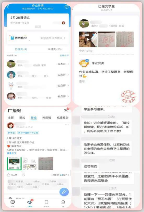 疫情當下,華中師范大學附屬海豐學校(小學部)的汪校長迅速帶頭,成立研討小組,以“班級優化大師”軟件的各項功能作為基礎,全面籌備與開展科學的課前預習與課后作業布置、反饋,很好地聯動家長一起,做好同學們的知識鞏固與心理健康成長輔導,見證孩子們一點一滴的進步。