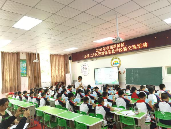 近日,2021年春期翠屏區小學二片區智慧課堂教學經驗交流活動在宜賓市武廟街小學學術廳舉行。本次活動以“構建智慧課堂、創設有效教學”為主題,旨在為二片區數學骨干教師在智慧教育課堂教育教學方向的新理念、新動態,搭建展示交流的平臺,充分發揮骨干教師的輻射帶動作用。