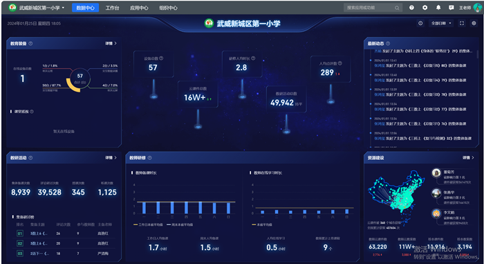 作為甘肅省評定的“智慧教育標桿校”,武威新城區(qū)第一小學一直以教育信息化作為提升辦學水平的突破口,著力打造現(xiàn)代化學校,始終緊握新時代現(xiàn)代化教育機遇,致力于改善辦學條件。學校搭建了校園網(wǎng)絡,通過加強信息化應用培訓,教職工利用信息平臺或信息化工具開展教育科研、班級管理、網(wǎng)絡培訓、讀書分享、宣傳教育、家校互動等工作,大大提高了工作效率。