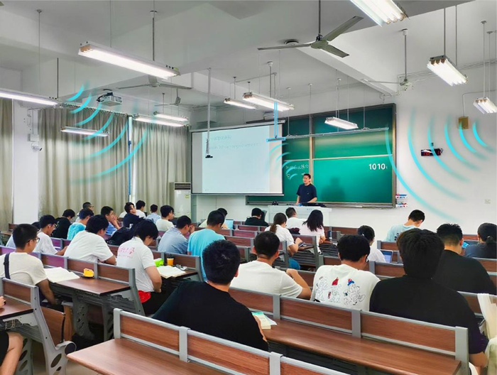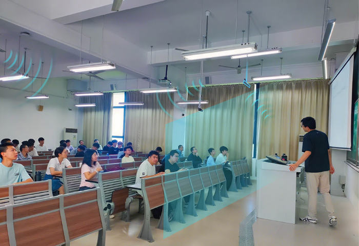 如何讓教師“輕松講”,學生“安心聽”?此次部署的希沃“無感擴聲”系統給出了答案:從40㎡的小教室到200㎡的大教室,只需一鍵開機,聲音即可自然、清晰、均勻地覆蓋每一個角落,教師授課無需佩戴麥克風,可脫離傳統手持或領夾設備。