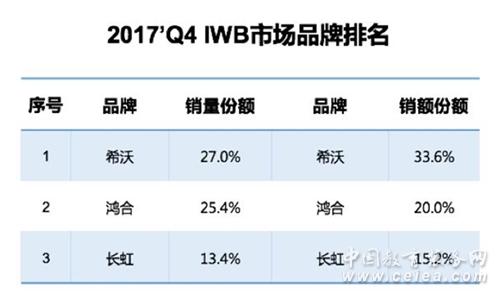 和33.6% ,是希沃繼2017年Q3第二次躍居IWB行業第一 。