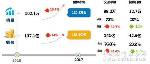 從2017年度數據來看,中國IWB市場整體形勢看好。報告預測,2018年,交互智能平板將持續升溫,銷量同比上漲22.6%